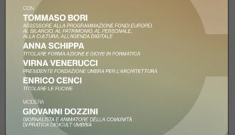Jean Luc Bertoni, editore; Florian Castiglione, architetto funzionario della Soprintendenza dell’Umbria; Mario Cucinella, architetto e fondatore della School of Sustainability; Tiziana D’Acchille, direttrice dell’Accademia delle Belle Arti Perugia; Maria Dolores Morelli, architetta e professoressa dell’Università Vanvitelli e Master Planet life Design; Marco Marchetti, avvocato esperto in materie urbanistico ambientali; Mario Pisani, architetto, professore e critico; Antonio Pugliano, architetto e professore di Restauro Roma tre; Roberto Segatori, sociologo e professore dell’Università degli Studi di Perugia; Daniele Verdesca, architetto “dell’informazione e del digitale”; Luca Zevi, architetto e vice presidente Inarch, Istituto Nazionale di Architettura.